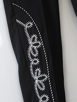 裙邊和口袋上有西部風格嘅刺繡嘅褲。